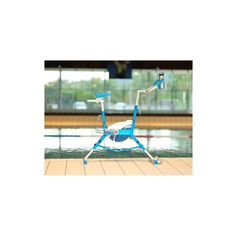 L’ergonomie adaptative avec 6 axes de réglage et un système Click&Turn permet d’adapter l’aquabike à toutes les morphologies et à tous les bassins. L’aquabike se module à la fois en hauteur et en envergure au niveau de la selle et du guidon. Les repères de marquage permettent de changer facilement la position de la selle et du guidon pour une aisance maximale d’utilisation.
