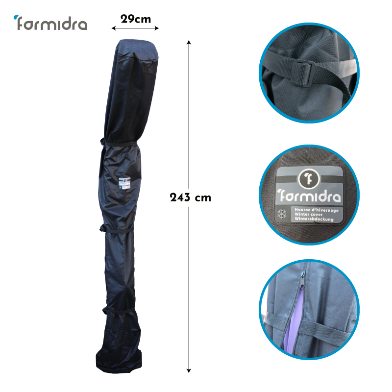 La housse d'hivernage pour douche solaire de diamètre 29cm et de hauteur 243cm.