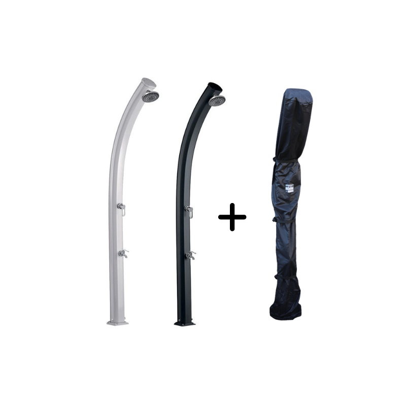 Fabriquées en Italie, les douches solaires Jolly d'une capacité de 33L, disposent d'un rince-pieds pour une hygiène optimale, d'un pommeau orientable effet pluie et d'un mitigeur qui régule la température de l'eau.