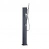 Cette douche compacte et élégante est dotée d'un corps en aluminium Thermolaqué et est équipée d'un rince pieds, d'un mitigeur et d'une douchette flexible.
