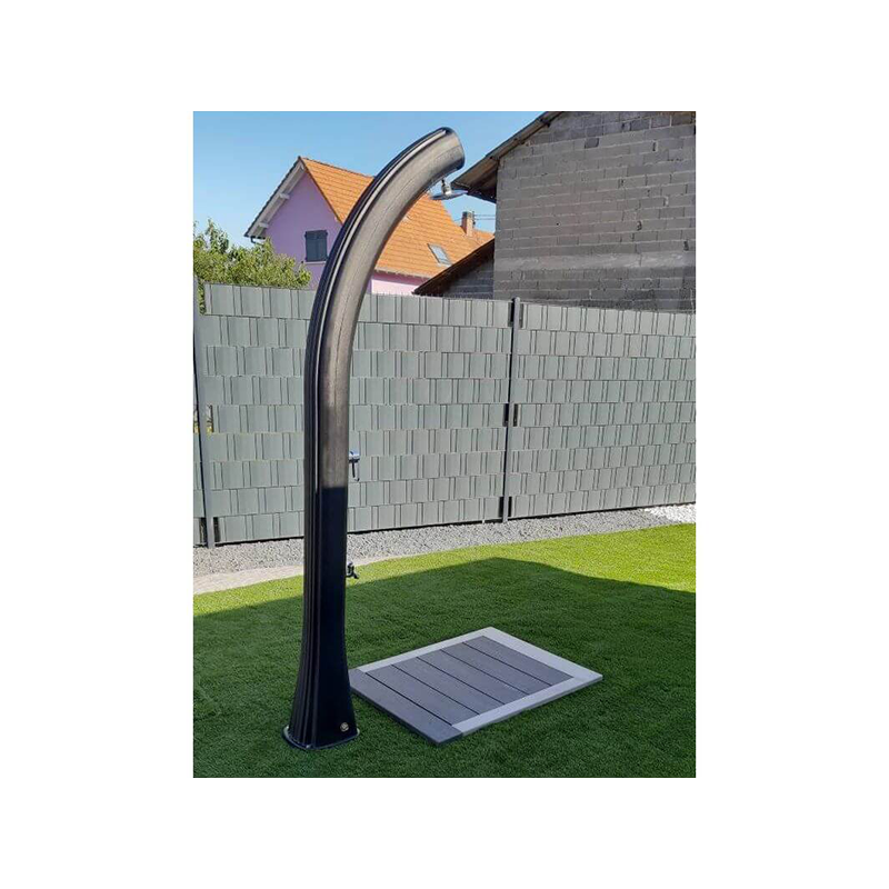 Avant et après la piscine, au retour de la plage ou après votre course à pied, votre douche solaire d'extérieur Formidra vous attend. Alors que vous en profitez et laissez couler l'eau sur vos épaules, assurez-vous de bien garder les deux pieds sur le caillebotis. Cela vous évitera de prendre l'eau !
