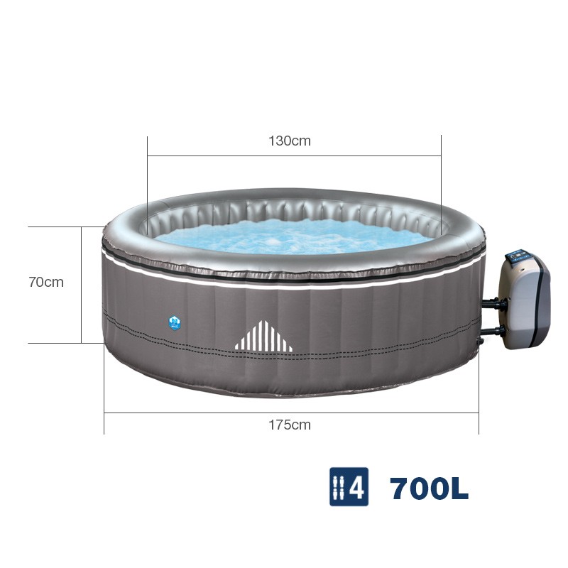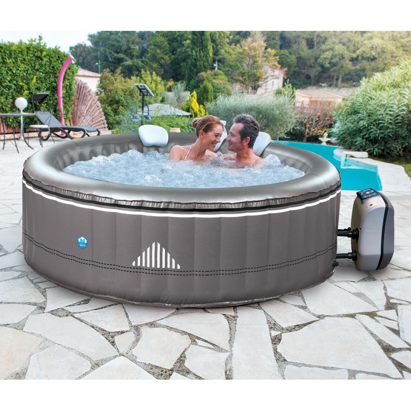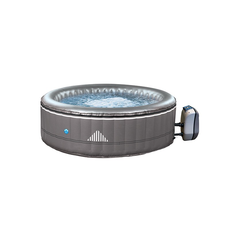 Gris taupe avec une finition similicuir ultra-résistante, ce spa se distingue par les discrètes bagues qui couronnent sa structure et un motif graphique moderne. Elégant, il se fond dans tous les décors: intérieur contemporain ou classique et même dans le jardin.
