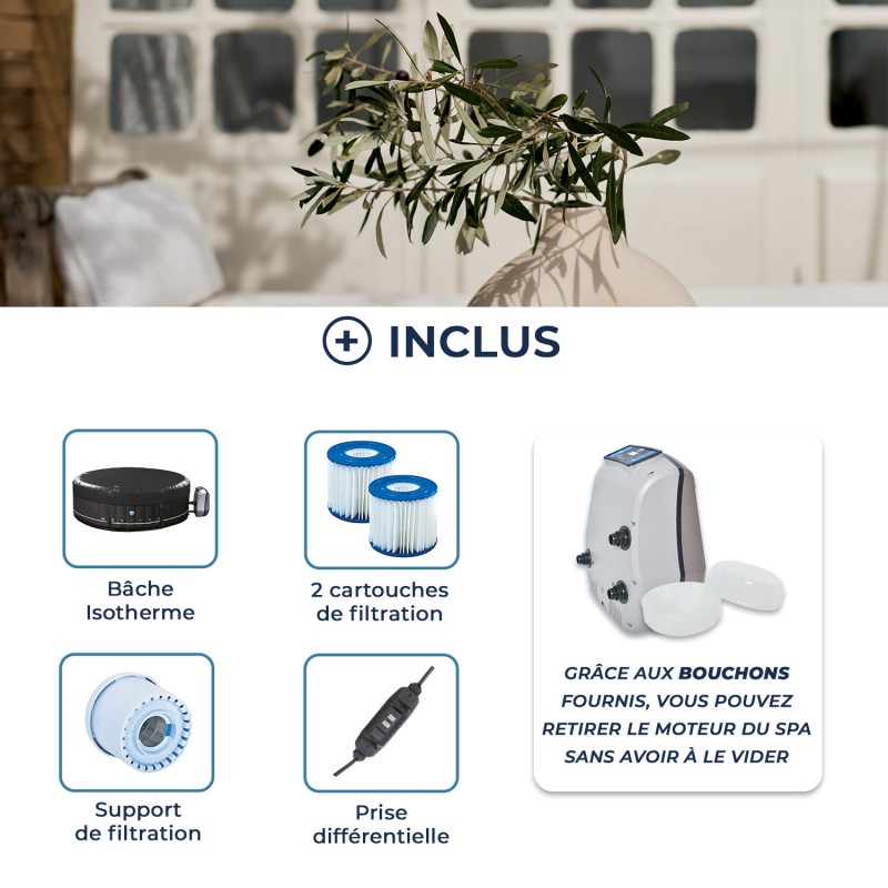 Compact et élégant, vous pouvez gonfler et installer en toute rapidité votre nouveau spa pour pouvoir en profiter immédiatement !
