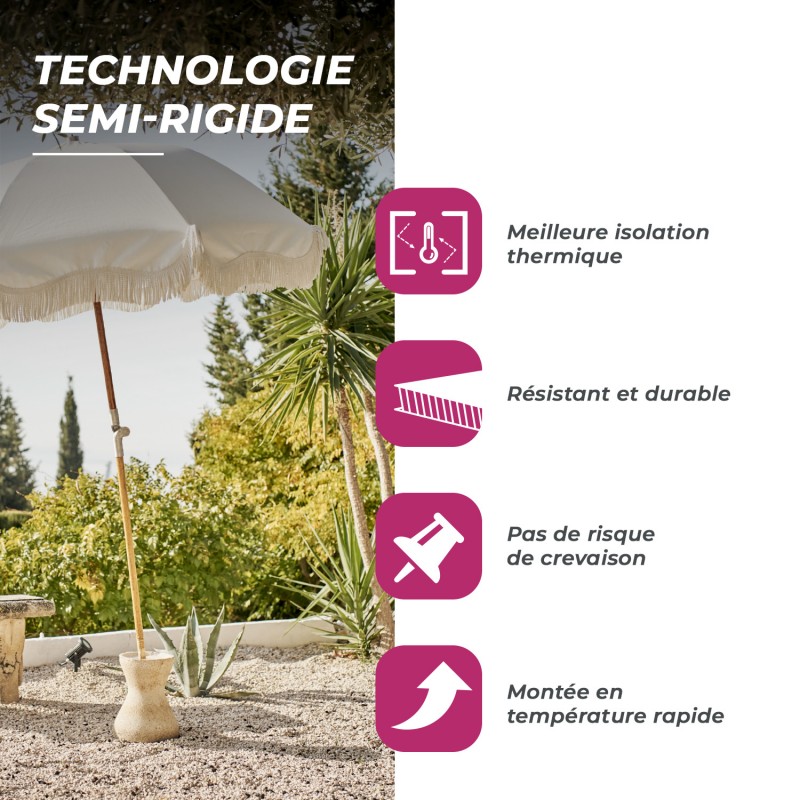 Liner intérieur et extérieur : l'intérieur en PVC perlé avec tapis isolant intégré; l'extérieur en PVC tressé.