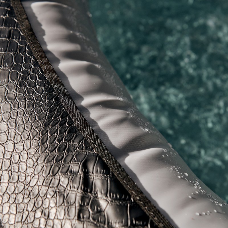 Noir avec une finition similicuir effet croco ultra-résistante, ce spa se distingue par les discrètes bagues qui couronnent sa structure et un motif graphique moderne. Elégant, il se fond dans tous les décors: intérieur contemporain ou classique et même dans le jardin. Un liner intérieur de qualité supérieure a également été placé afin de vous offrir une assise des plus confortable et un entretien facile.