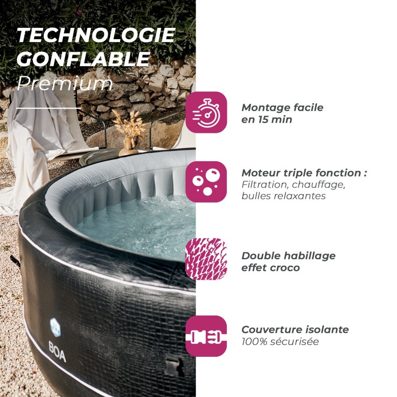 Caractéristiques Pack rêve Spa gonflable NetSpa BOA 5/6 places + Oxygène actif offerts