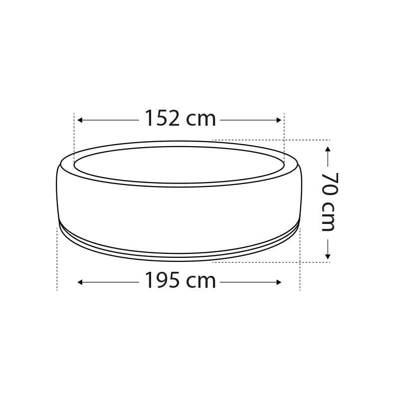 Ses dimensions intérieures de 152 cm de diamètre vous apportent l'espace nécessaire pour créer un espace de détente pour un faible encombrement total (195 cm de diamètre). Vous pouvez ainsi imaginer le positionner sur votre terrasse ou jardin, en intérieur comme en extérieur.