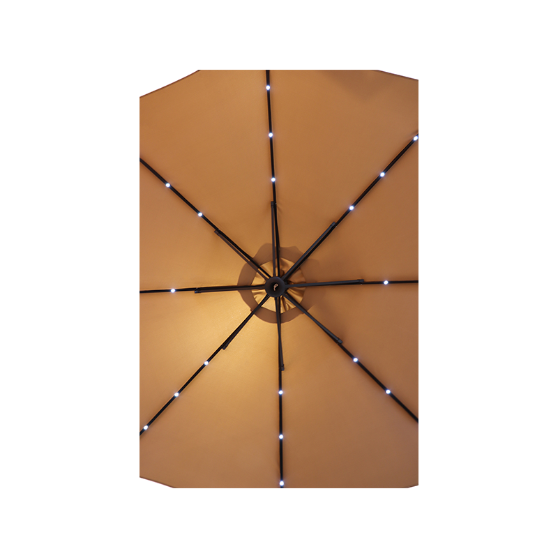 Le parasol Netspa vous protège des rayons de soleil et vous offre une ambiance lumineuse de nuit, grâce aux 24 lumières LED intégrées à la structure alimentées par un panneau solaire.